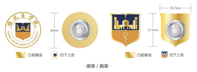 校徽徽章是学校形象和信息对外传达的重要途径之一,其视觉传达和品质直接影响到学校形象的树立。必须严格按照本手册规定的格式和制作规范执行,以维护学校形象的统一性。